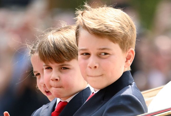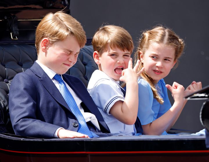 トゥルーピング・ザ・カラーにて。ウィリアム皇太子ご一家の子どもたちは、馬車に乗って宮殿を出発。