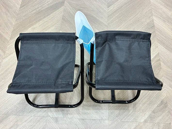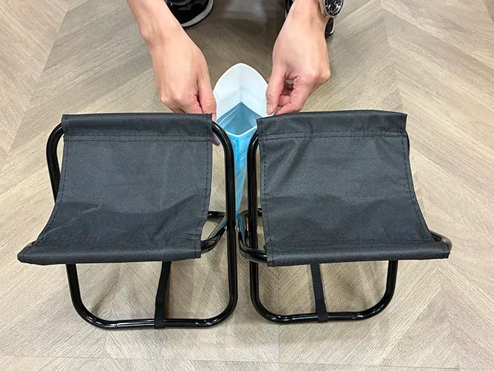 流れはいたってシンプル。まず、2個の折り畳みイスを横に並べます。