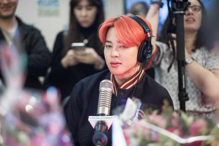 ラジオ収録にやって来たジミン。メイクやファッションもナチュラルにまとめて、親しみやすさを感じさせて。