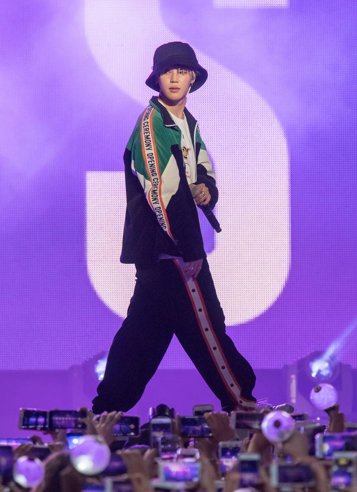 スーツやハイブランドを着こなすジミンもいいけれど、こんなストリートスタイルも見たくなる。