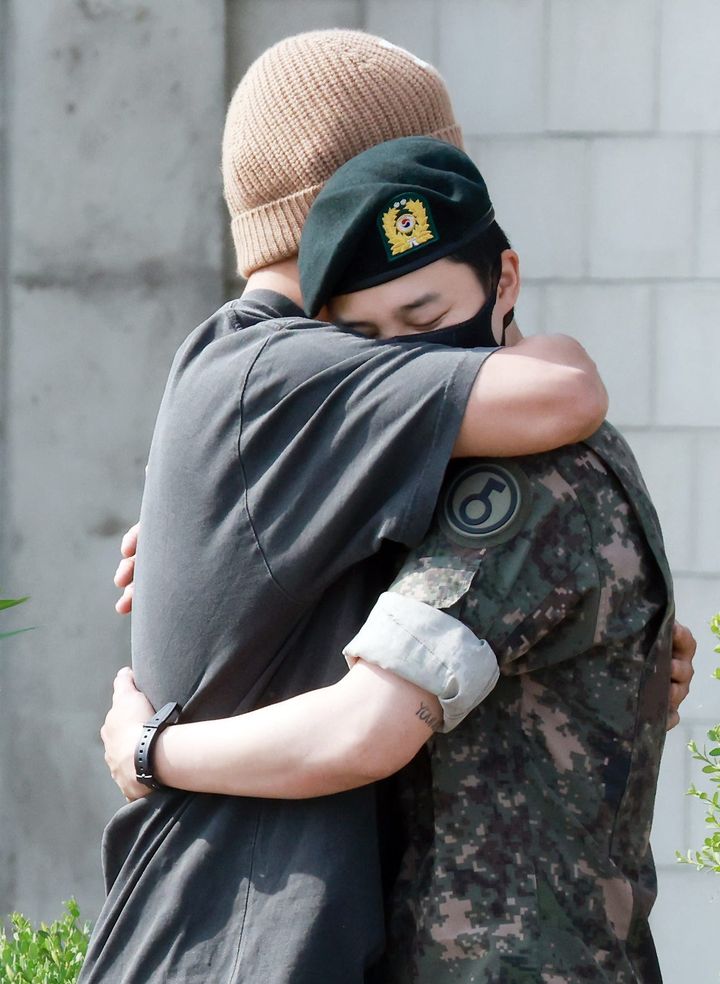ジンが誰より早く除隊し、メンバーが集合して久々の再会を果たしたこの日。兵役中のジミンも駆け付け、仲間たちと熱い抱擁を交わし、これにはARMYもウルウル。