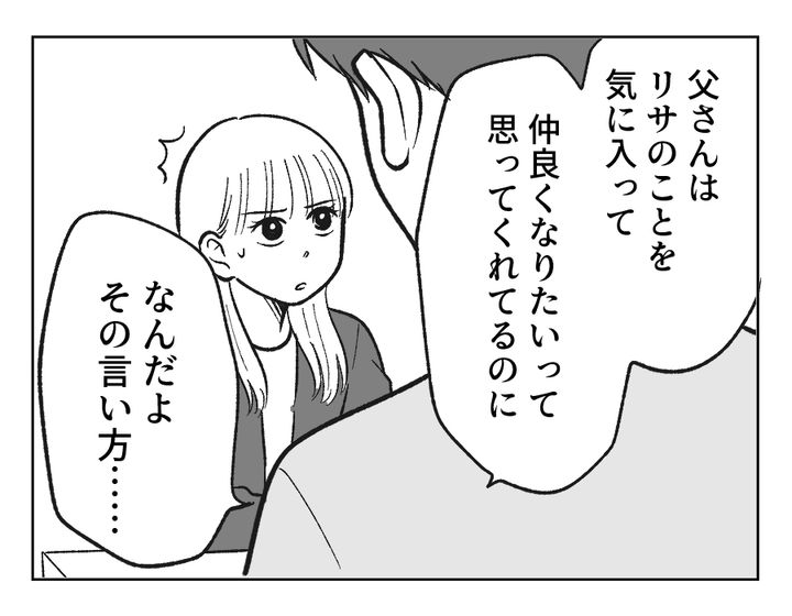私(リサ)は、夫のトモアキと結婚したばかり。義母は優しくてチャキチャキ動く働き者。義父は凄腕の経営者で、たくさんの部下から慕われている豪快な人です。トモアキも義父をとても尊敬しています。そんなある日、義父が私をよびすてに! さらに街で義父と偶然会うと、知り合いに私を「ウチの嫁のリサ」と紹介。その流れで私をジュエリーショップに連れていき、「好きなものを買ってあげる」と言ってきたのです。私はなんとか逃げ帰りトモアキに訴えましたが「買ってもらえばよかったのに」と言われ……?