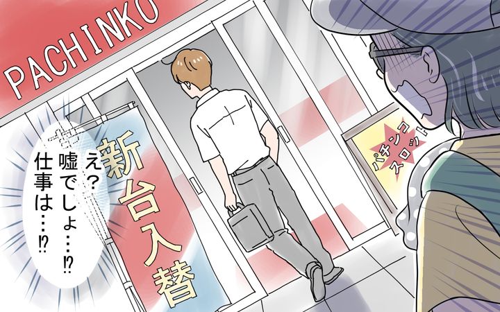 2. 【漫画】仕事のはずでは!? パチンコ店に入っていく夫の姿を確認【嘘をつく夫 Vol.9】