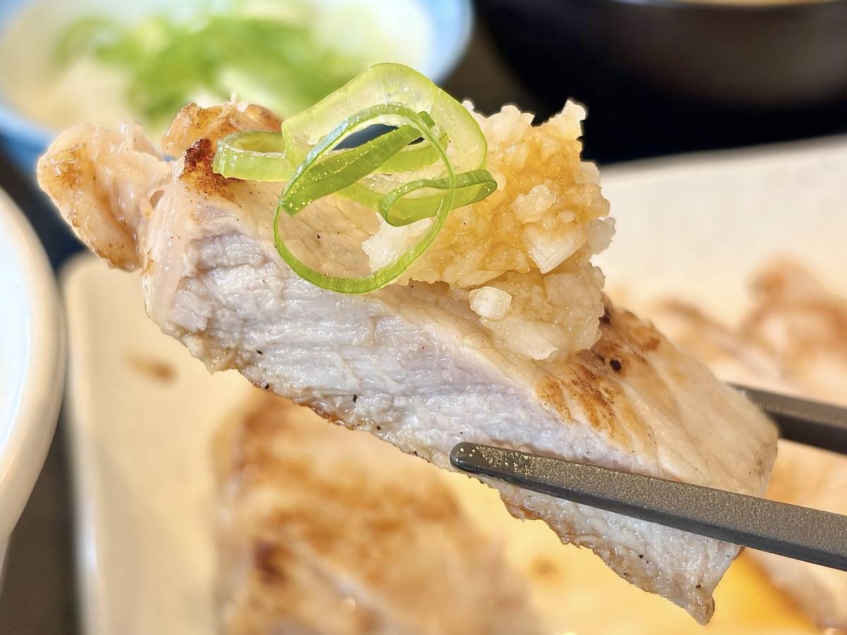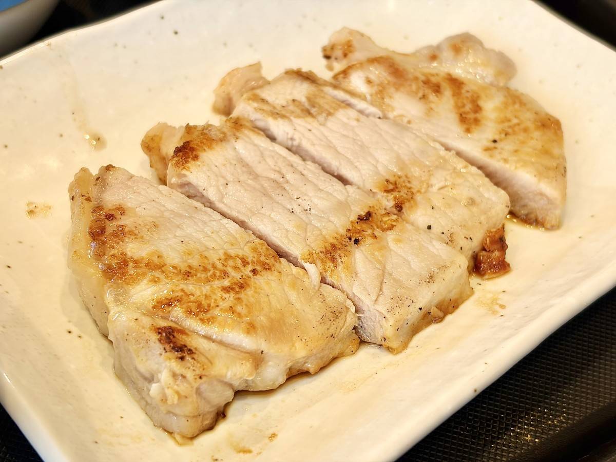 大きくカットされていて量が少なく見えてしまうビジュアルですが、実際は120gの豚ロースがしっかりとした食べ応えを演出していました♪