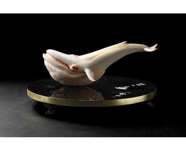 <写真>「白鯨」約H15.7×W33.3×D33.3cm 木彫(檜)・顔料・膠(にかわ)・金箔・漆・貝(螺鈿)など