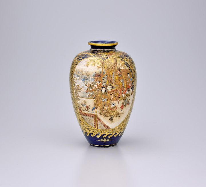 <写真>錦光山「宮廷唐人物薩摩花瓶」径12×高さ18.6cm