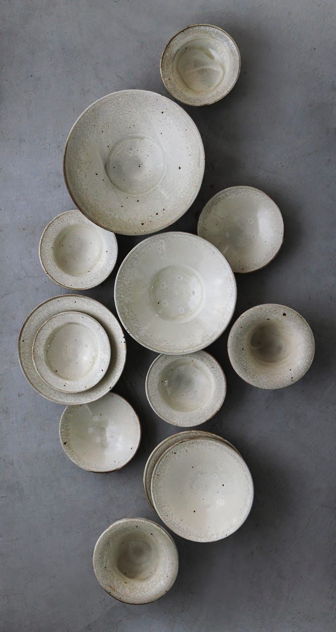 「神奈川県相模原市で作陶されている下村淳さんの個展を開催いたします。下村さんは佐賀・唐津で陶芸を学び、モダンでありながら焼き物への探究や知性が滲む作品を作られています。趣ある土の表情に伸びやかなかたちをしていて、和洋問わず料理を受け止める包容力が魅力。ヒビ模様や鉄点が浮かぶ粉引やマットな黒釉など、さり気ない美しさに満ちた日々のうつわをご紹介いたします。どうぞお出かけください」(うつわ祥見 店主)