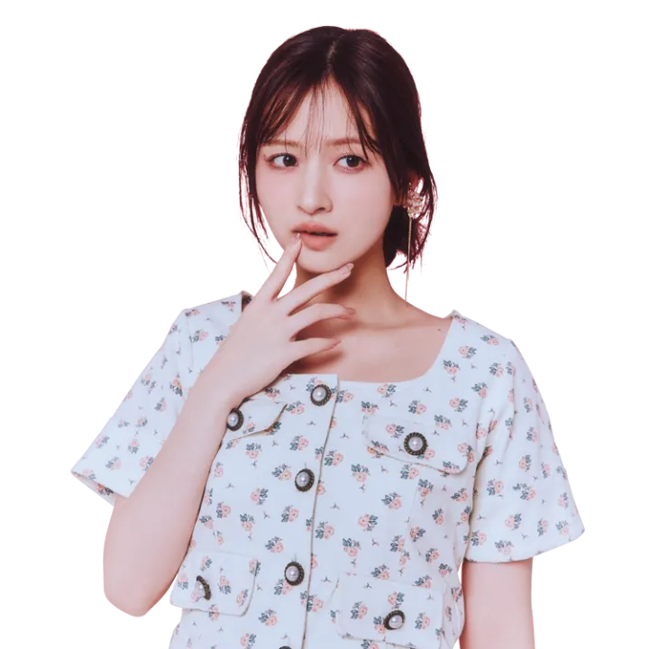 花柄トップス 17,380円、同パンツ 21,780円/ともにSISTER JANE(ザ ウォール ショールーム)左耳につけたイヤリング 4,400円/Matilda rose、リング 13,200円/Q-pot.(ともに805showroom)