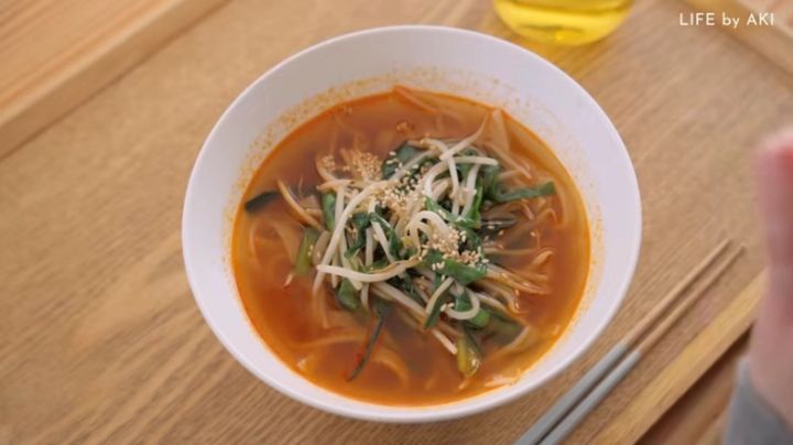 今回、akiさんは、おすすめ具材に記載されていたニラともやしを加え、最後に白ゴマをトッピング。