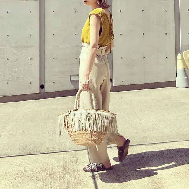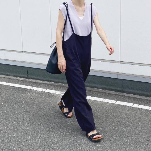 気温30度前後の時期は「ノースリーブのサマーニット」が最適。薄手でざっくりした網目のサマーニット生地は通気性がよく、汗がこもりにくいですよ。