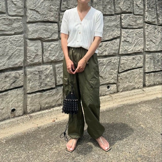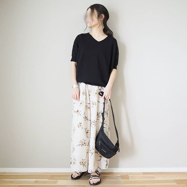 また大人にとってフレンチスリーブは二の腕が気になるものですが、サマーニットは生地そのものに落ち感があるため肩まわりが目立たず、二の腕の露出をカバーできます。気温が高い日の通勤コーデにもおすすめですよ。