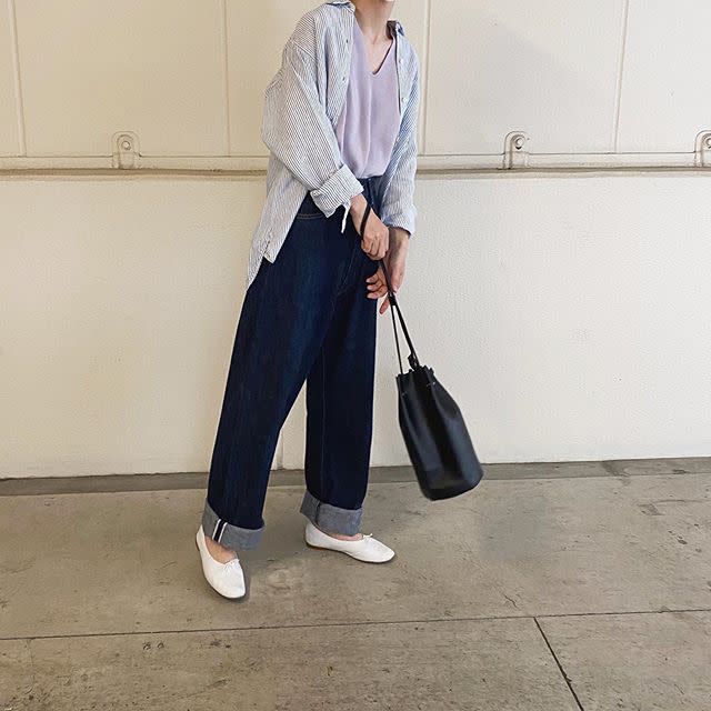 気温18度~22度くらいの時期にちょうどいいのが、半袖・ノースリーブのサマーニットに軽めの羽織モノを合わせる着こなし。薄手のシャツを羽織れば、夏向きのサマーニットをひと足早く活用できますよ。