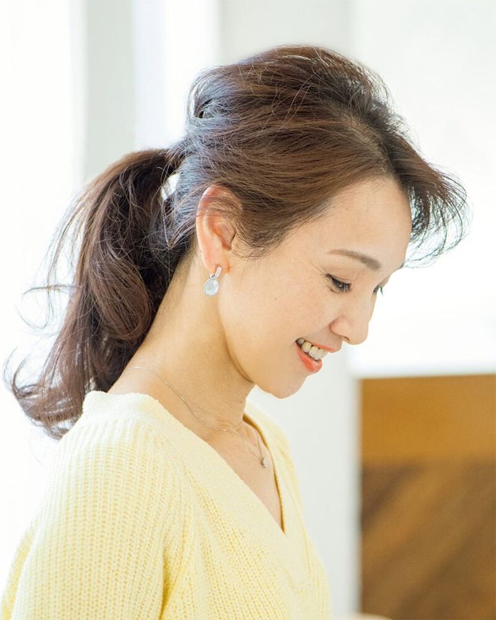 結ぶときに髪を引っ張らずにゆるく結んでボリュームを残します。