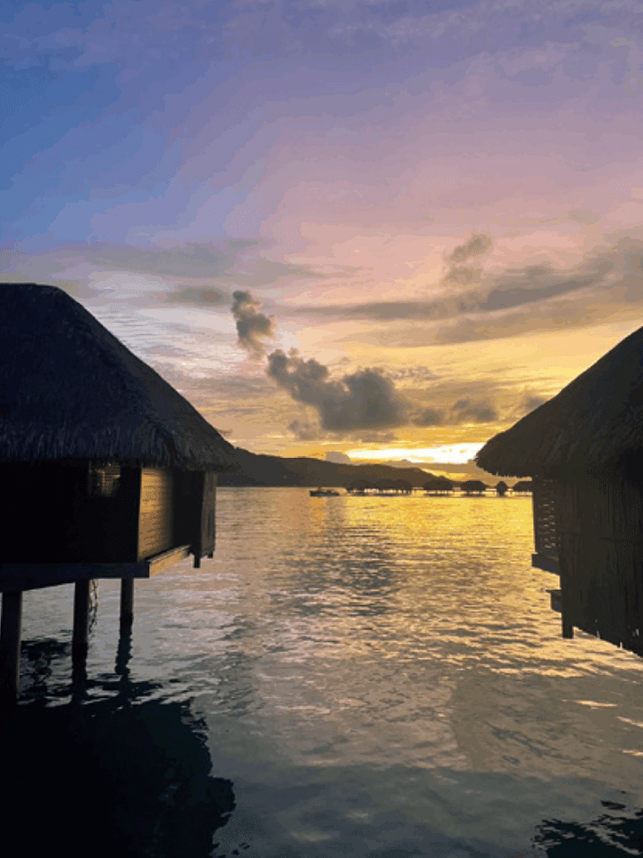 ボラボラ島の「フォーシーズンズホテル」。景色はもとより、現地で見かけたマダムたちの旅スタイルも眼福でした。