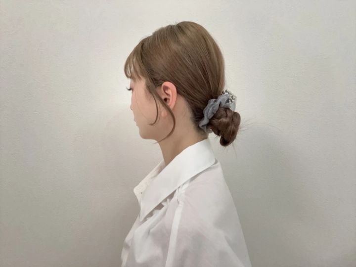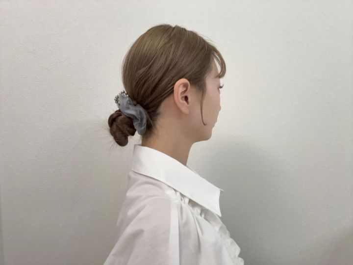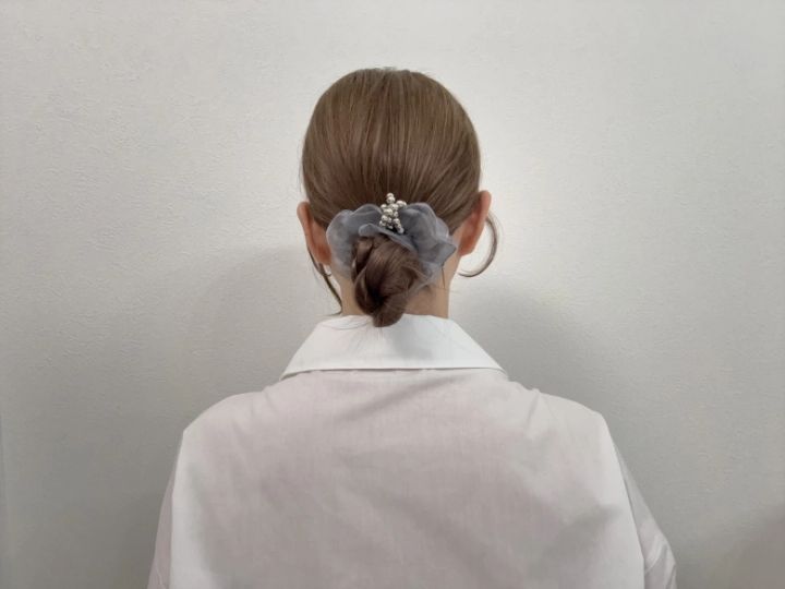 グレーのシュシュなら華やかなのに落ち着いた印象に