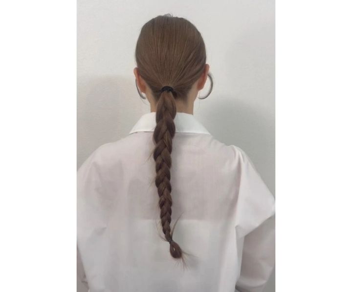 三つ編みがゆるいとカジュアルすぎたりだらしなく見えたりするので、きっちり編んでいきます。