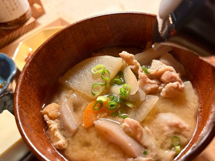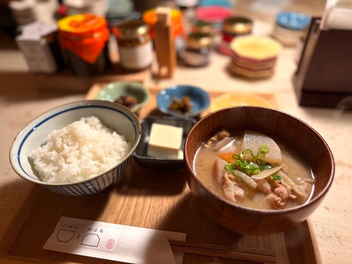 根菜たっぷりの豚汁もおいしくて、お店の方に教えてもらった「お酢を少し足すアレンジ」も新鮮!