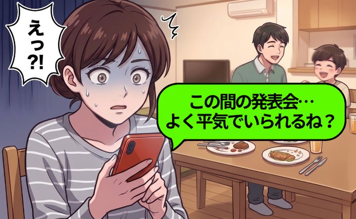 息子の幼稚園生活の集大成である発表会が無事に終わり、家族でお祝いをして多幸感に包まれていた夜のこと。私のスマホに、あるママ友・Rさんから突然LINEが届きました。てっきり労いのメッセージだと思って笑顔で画面を開いたのですが、そこには目を疑うような言葉が並んでいて、一瞬でサーッと血の気が引いたのです……。