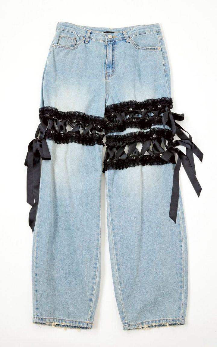 (上から)デニム×黒リボンが夢可愛♡ デコラティブで着こなしの主役に。¥32,450/ミステリアスホテル(ハナ コリア)、すっきりとした体のライン拾わないシルエットで、レイヤードスタイルにもぴったり。¥19,000/ランダ