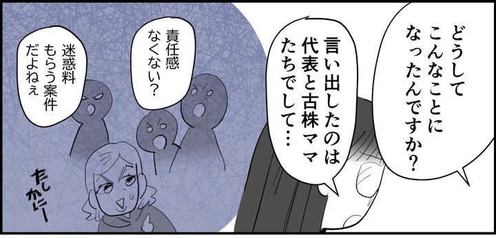 結局5万円は支払う必要がないことがわかり、代表や古株のママたちが勝手に言いだしたことだということもわかりました。副代表は代表たちの雰囲気に流されたにすぎず、そもそも5万円は会計として受け取るつもりがなかったと言います。