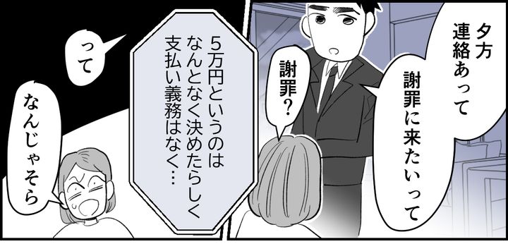 すると何も知らなかった旦那さんは驚きつつも、うちへ謝罪に行くと言いだしたのです。