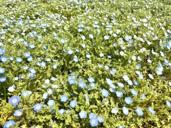 あたり一面のネモフィラの花々が、まるで青い空につながっていくかのよう。とっても素敵な景色でした!