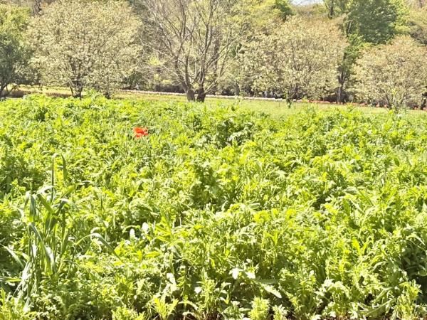 こちらは、今後見頃を迎える予定のポピー畑。数本だけ咲いているポピーがありました。