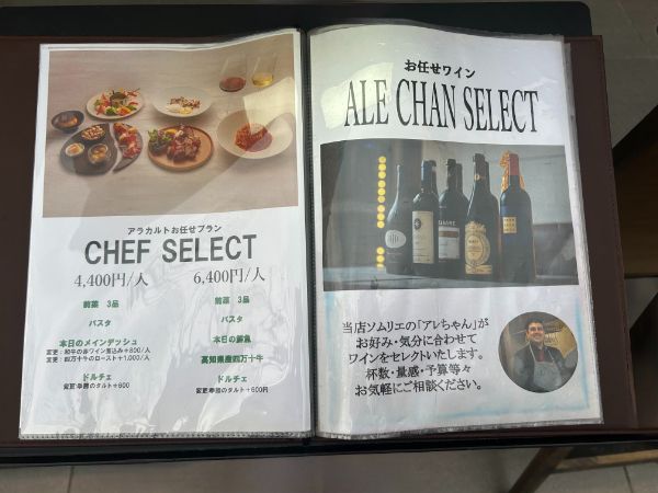 アラカルトをその日のおすすめでコースに仕立てた「シェフ・セレクト」や、ソムリエ直々のペアリング「アレチャン・セレクト」といった、お任せのプランも魅力です。