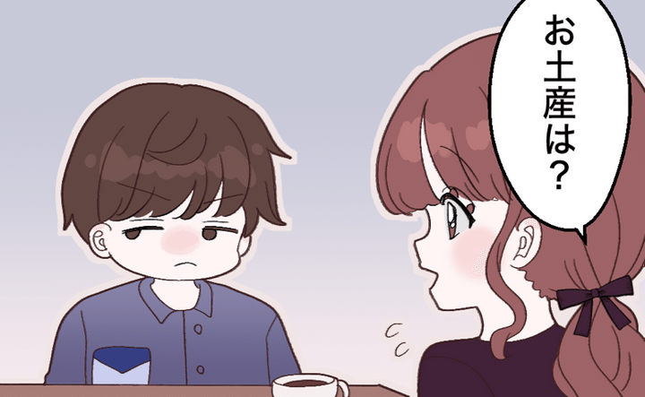 彼と近所のファミレスで会ったのですが、旅行疲れからか、彼は終始不機嫌で……。会話も続かず、「せっかく会えたのに」と悲しくなった私。空気を変えようと「お土産ちょうだいよー(笑)」と彼に冗談っぽく笑いかけました。