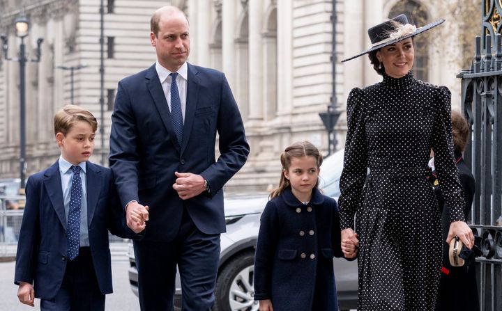 フィリップ王配の追悼式に出席するため、両親と一緒にウエストミンスター寺院に入るジョージ王子とシャーロット王女の姿をキャッチ。ジョージ王子がぐんと背が伸びたのがよくわかる!
