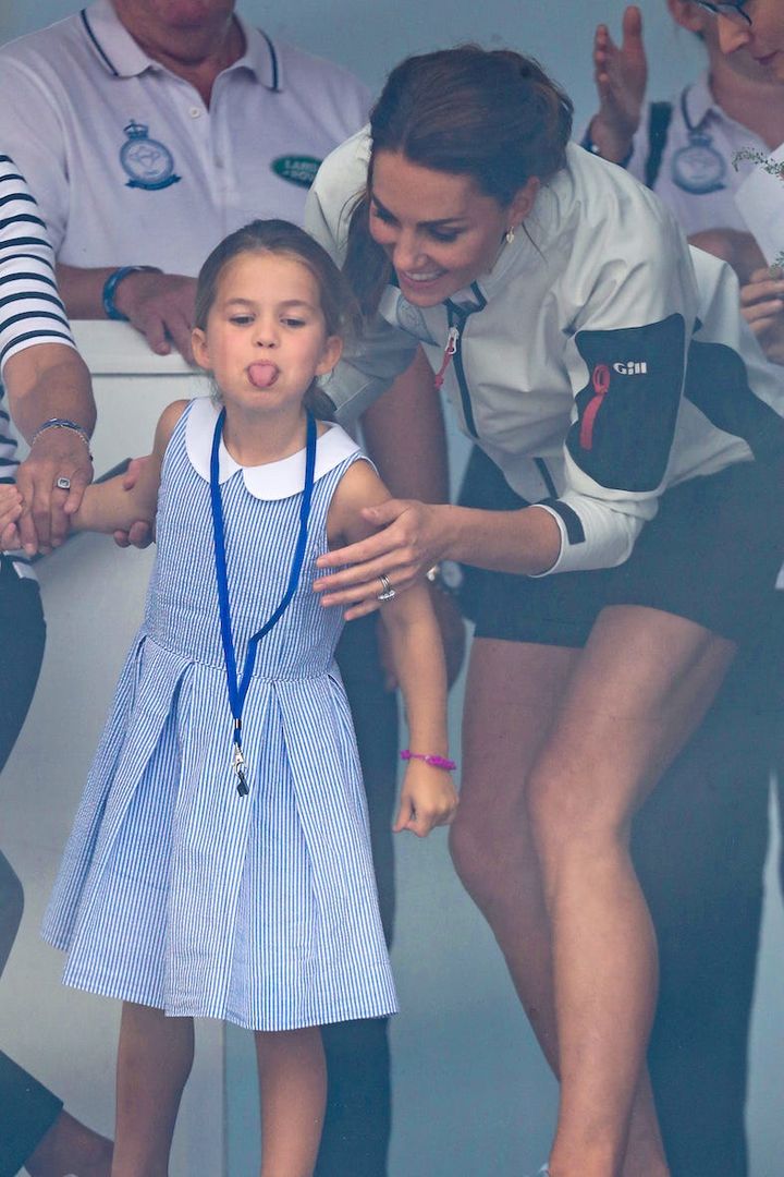 ボートのイベントで、キャサリン妃がシャーロット王女に何か(おそらくカメラマンの群れ)を指差したあと、幼い王女は躊躇なく生意気モードを発動し、彼らのカメラに向かってあっかんべー! 幸いなことに、キャサリン妃もこの状況をかなり面白がっていた様子。