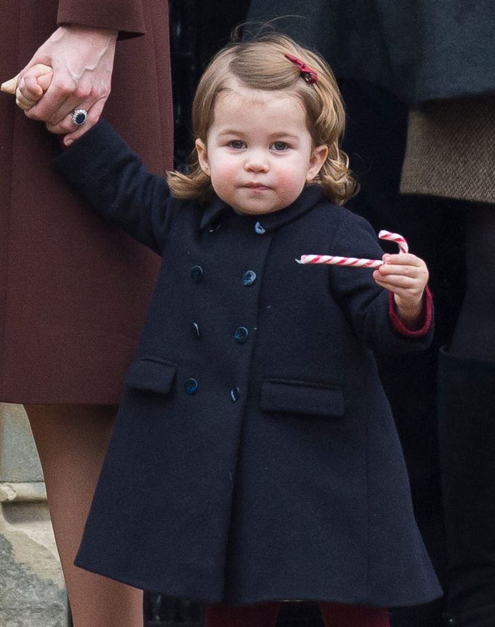 多くの人にとってクリスマスはスイーツの季節。そのルールはロイヤルファミリーの小さなメンバーにも適用されるみたい! 2016年、家族と一緒に教会を訪れたシャーロット王女の手にはキャンディケインが。