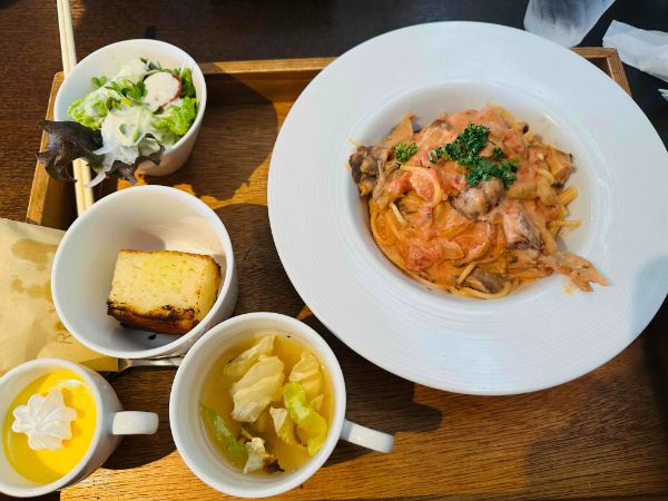 ランチメニューにはパスタやカレー、ピザなど豊富なメニューが揃っており、 なんとすべてのランチにスープ・サラダ・デザート・お土産付きという豪華さ!