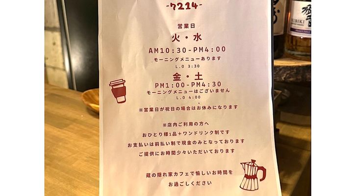 コーヒー(七ツ蔵ブレンド、デカフェ、ラテ)