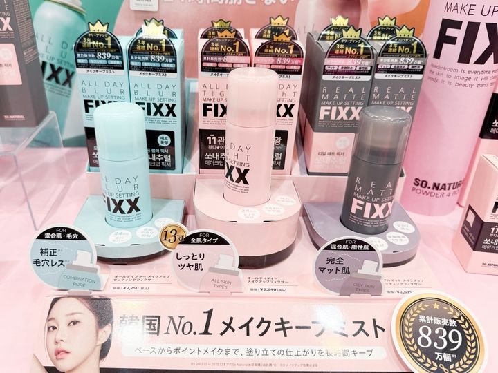 ラインアップは、保湿をしながらツヤ肌をかなえる「FIXX オールデイタイト メイクアップセッティングフィクサー」、メイクノリをアップさせ、ふんわりマットに仕上げる「FIXX オールデイ ブラーメイクアップセッティングフィクサー」、皮脂吸着パウダーを配合し、テカリを抑えながらマット肌に仕上げる「FIXX リアルマット メイクアップセッティングフィクサー」と、肌質やなりたい肌印象によって選ぶことができます。