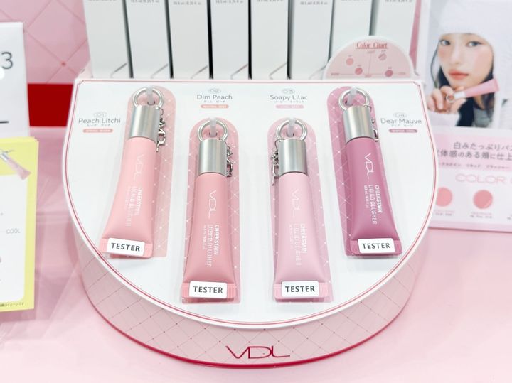 “ぽよんチーク”でおなじみのVDLのブースでは、リキッドタイプの「チークステインリキッドブラッシャー」を発見。パステル調はそのままに、パールカラーで自然な立体感を演出しながら、まるで恋に落ちたようなじゅんわりとした血色感(※1)とツヤ感をプラスします。