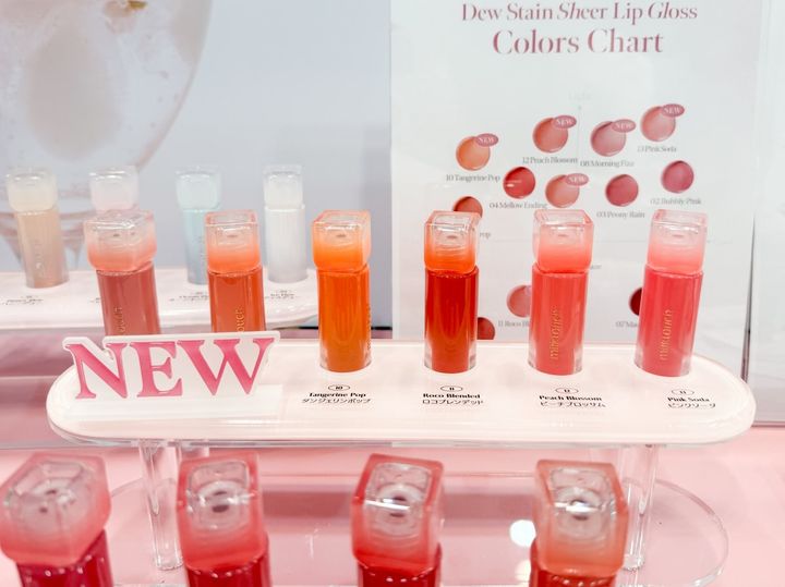 milktouchのブースで見つけたのは、水滴のような透き通ったプルプル感が魅力の「デューステインシアーリップグロス」。長時間続く塗りたてのツヤと発色、高保湿なのにベタつかない軽いつけ心地が人気のリップグロスから、春のムードをまとった新色が登場しました。