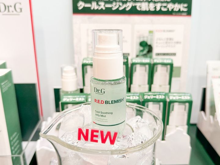 Dr.Gでは、近づけて吹きかけるとぷるんとしたジェリーセラムとして使用でき、肌から離して吹きかけるとミストとして使用できる「R.E.D BLEMISH クールスージングジェリーミスト」が登場しました。