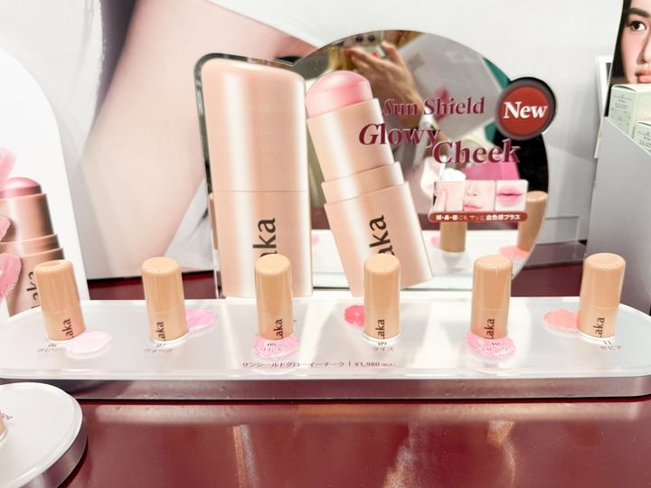 チークでもジュワッと滲むような血色感(※1)をまとえるアイテムが続々登場! Lakaでは、UVケアとツヤ発色の両方をかなえる「サンシールドグローイーチーク」がロフトにて先行販売中です。