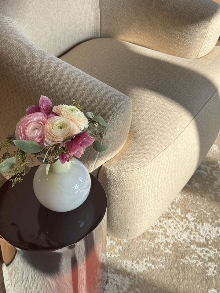 カラフルな花々が街を彩る、気持ち良い季節が始まりました。私も毎週末マーケットに出かけては、花を買い求めています。「今日は元気かな?」と様子を見ながら水をあげ、植物のお世話に勤しむのが普段のルーティン。優しい日差しが届く窓辺や、家族の視界にも入りやすいよう、ローテーブルにもさりげなく花を飾っています。