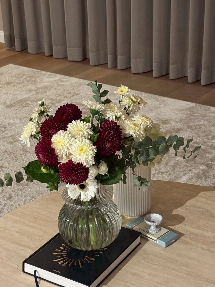 洋書の上に花器を配する、ちょっとしたホームデコレーションを考える時間も楽しくて、ふと気づけば家の中が花で埋め尽くされ、清々しい気配に満ちています。植物は心のバランスを整えてくれるもの。私にとってすっかり大切で愛しい存在となっています。