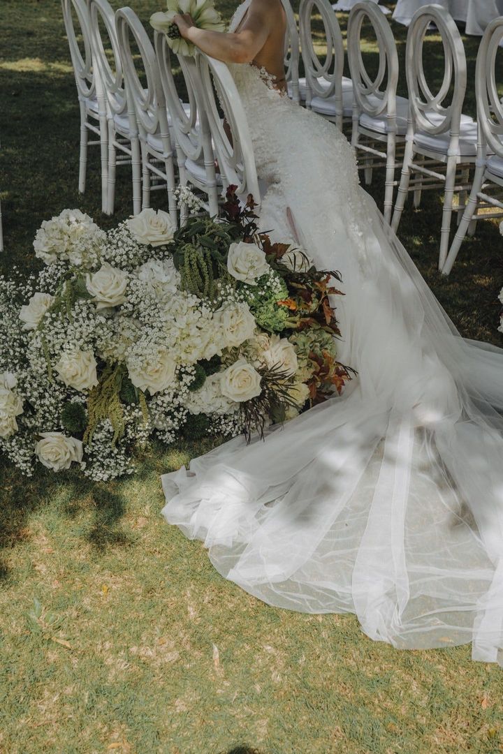 例えば、白に寄り添うピンクの花。ゲストの目に優しい繊細な発色にこだわりました。ハワイでは、温暖な風土ゆえ、準備できる花の種類に限界があったのですが、それでもなるべく近隣で育った花を…と、花への負担もないようオーダー。結果、全てにおいて悔いのないパーフェクトな装花が完成して感無量。式直後、ゲストから喜びのフィードバックがたくさん届き、何よりも嬉しかったです。『25ansウエディング』でも挙式の様子を取り上げていただいたので、もしよかったらチェックしてみてください!