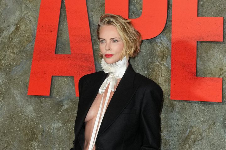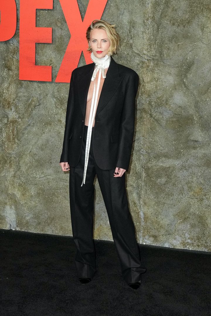 素肌にメンズジャケット!シャーリーズ・セロン、攻めルックでプレミアに登場