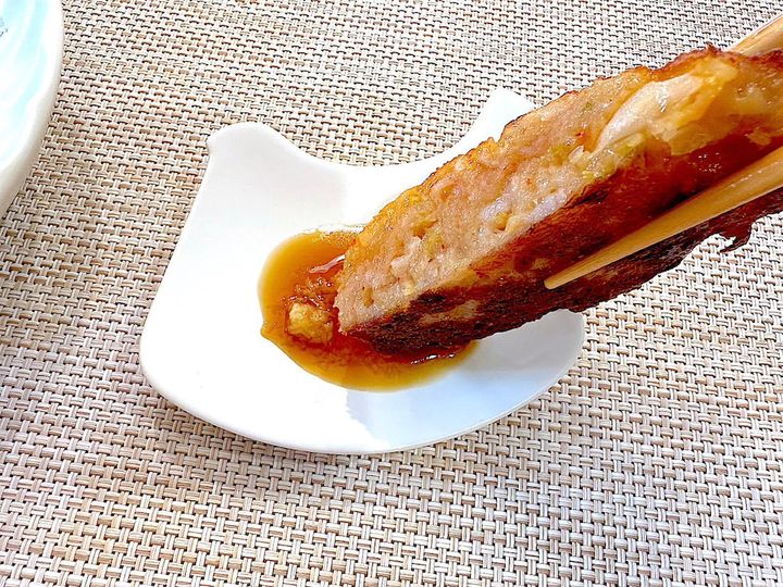 そのままでも十分いけますが、ここでちょっと味変、しょうがじょうゆをつけて食べてみま〜す。