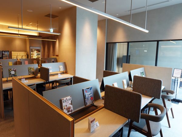 ▲SHARE LOUNGEは1人席や複数で利用できるBOX席などシートも多彩。知的好奇心を刺激する本の提案も