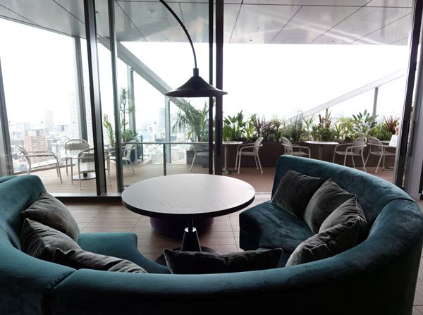 今回の内覧会では、6月に開業予定の「ザ・ゲートホテル大阪 by HULIC」(16~28階)の一部も公開されました。駅直結の利便性に加え、全223室の客室やレストラン、ラウンジを上層階に配置。大阪の街並みを一望できるのが魅力です。中でも、地上約120mの28階に位置するルーフトップバー&ラウンジ「PEAKS」(写真下)は、ホテルを象徴する空間。日中はアフタヌーンティー、夕方以降はハイティーが楽しめる予定で、開業が待ち遠しいですね。