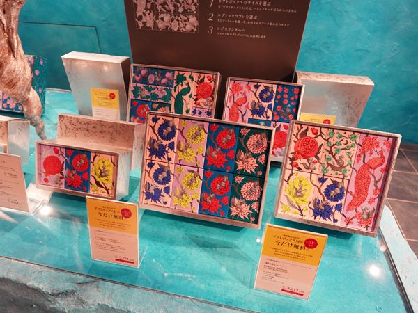 「どんぐりはちみつ」「ひのき柚子」といった、森の食材のマリアージュを楽しめる焼菓子が、ルディックコフレと呼ばれるおしゃれな小箱に詰められています。小箱を自由に組み合わせて、自分だけのオリジナルギフトボックスを作ることができるのもポイント。どんな小箱を組み合わせても、パッケージの絵がつながるようにデザインされているのだそう。