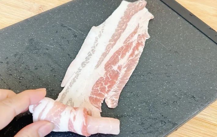 『岩下の新生姜』の本数に合わせて、豚バラ肉も同じ枚数を準備しましょう。