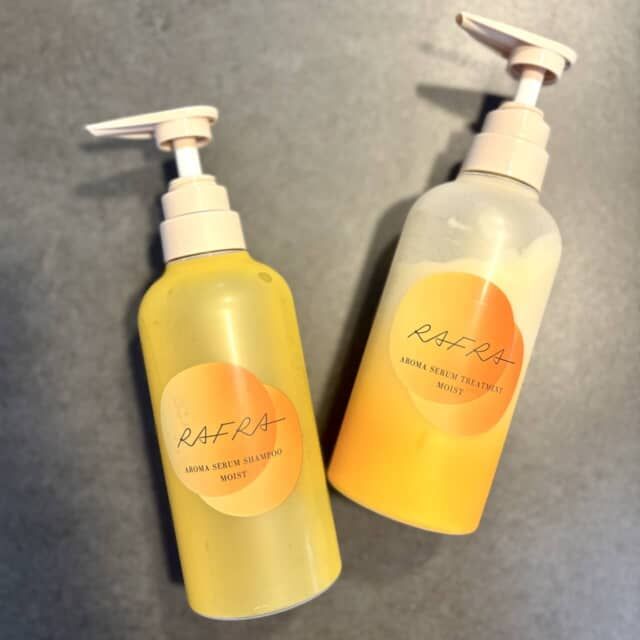 髪の乾燥や手触りの悪さが気になるなら、ラフラの「アロマセラムシャンプー モイスト」と「アロマセラムトリートメント モイスト」を。