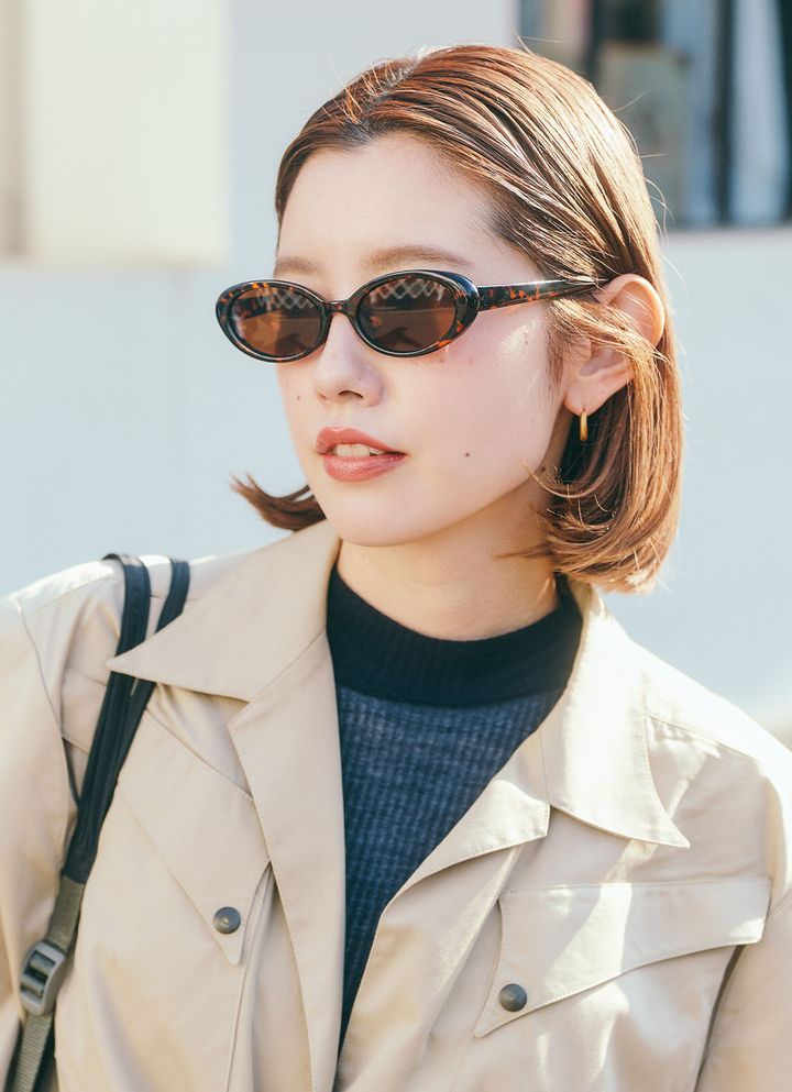 『ヌフ』のべっ甲柄フレームのサングラスで、こなれ感をプラス! トレンチコートとも相性抜群なアイテム。